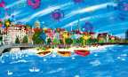 Sus pinturas reflejan un lenguaje ingenuo que le permite plasmar imágenes naturales, simples y coloridas de su país de origen, Venezuela, combinadas ahora con influencias europeas y suizas.