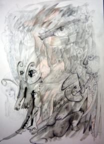 Su posición parte de un universo personal, basado en la catarsis, en el desfogue directo, en el dejar fluir para luego plasmar cual torrente sus ideas, que son explosivas, que poseen una cierta predisposición marcada por la ironía.