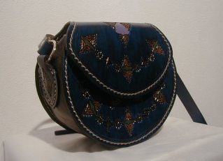 Carteras de cuero cincelado, cosidas y